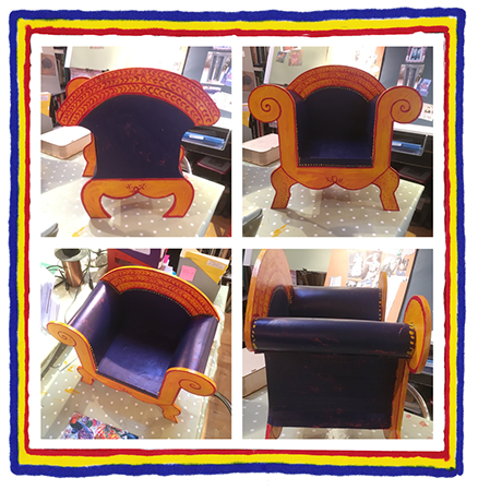 Photography shows a prototype 1/4 size armchair created from the maquette.