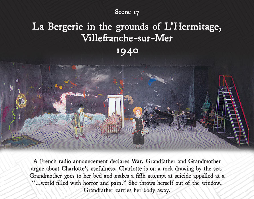 An exhibition of the drawings created for this production, with references to Charlotte’s visions of her remembered past.