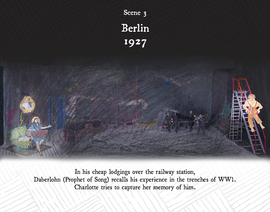 Award-winning Canadian librettist Alon Nashman conveys the absurdity, stumbling adolescence, and precocious romance that shaped Salomon’s early life, alongside the feverish creativity of her years in exile. Acclaimed Czech composer Aleš Březina is composing an original score essential to the soul-baring narrative. Scenographer/metteur en scéne Pamela Howard, author of the seminal book “What is Scenography”, literally draws theatre in a manner similar to Charlotte herself, painting the stage with colour and light such that the audience will experience Charlotte’s paintings being formed before their eyes.
