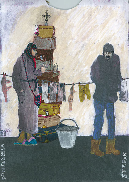 There is no ‘scenery’ as such, but the chamber is an installation of ‘vignettes’ using furniture and objects from the world of the Gogolian characters dislocated from their old world, but living in the new world as if they were still ‘in the old country’. The artefacts travel in one container. There is a 1 day technical get-in and unload. 1 day rehearsal with evening performance.