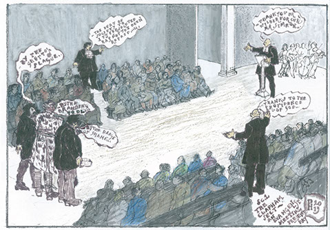 It is a true, fascinating and naive story that ultimately did not succeed. However, the chapel at Stansted Park that Lewis Way created for his purposes is testimony to the general optimism that prevailed amongst poets, artists, writers and musicians at a time when they were aware that whole world was changing. The New Jerusalem was performed in a traverse staging in the 18th Century Paviilion Tea Rooms in Stansted Park by kind permission of the Stansted Foundation.